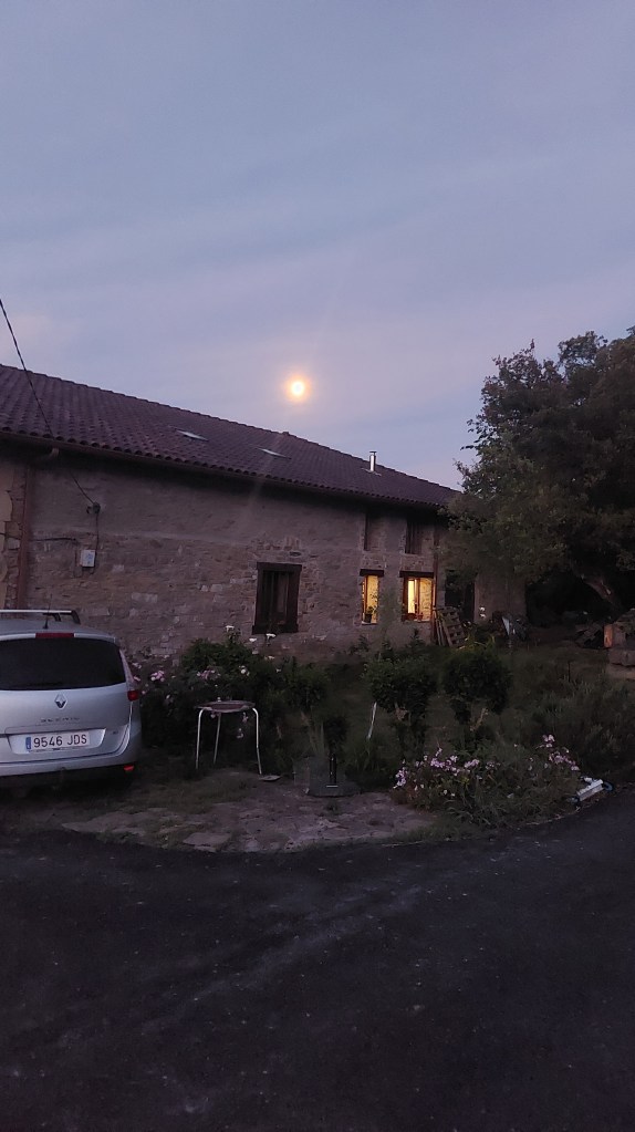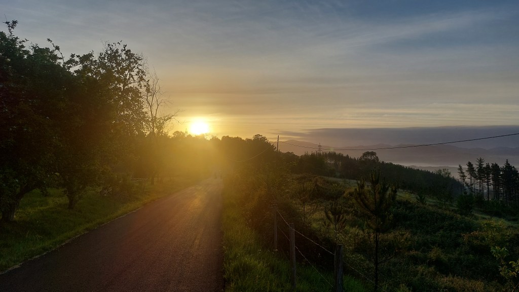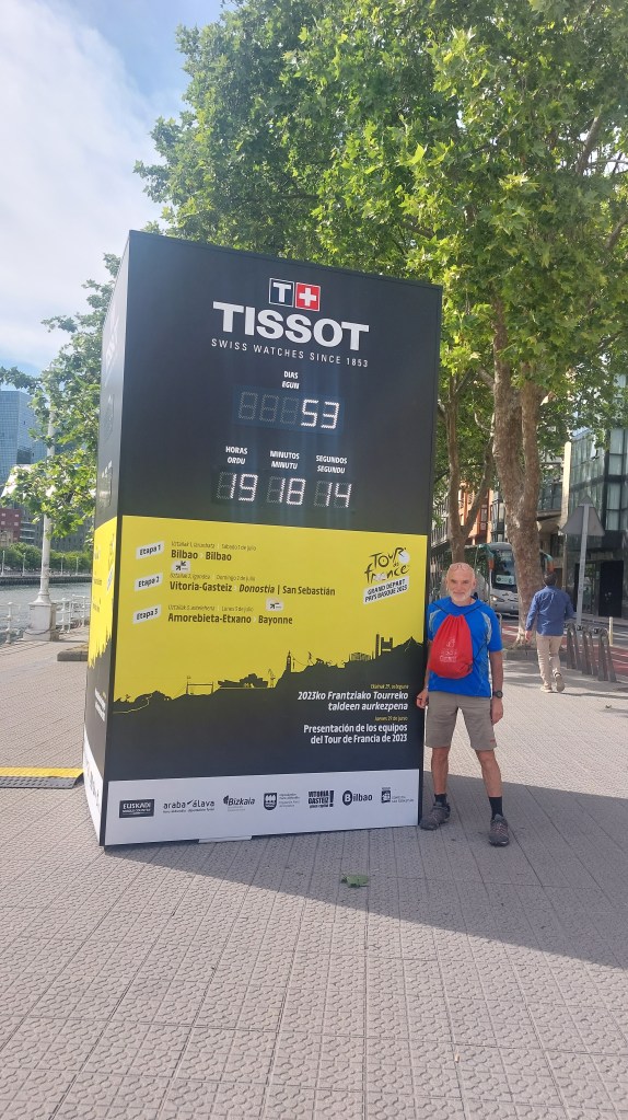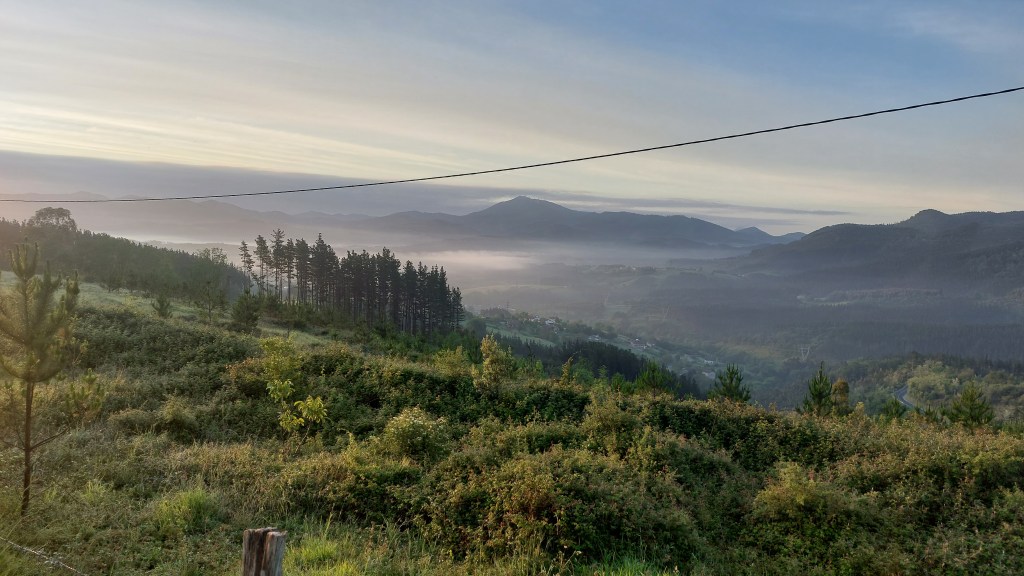 A 11h10 nous reprenons la route en direction de Bilbao. Nous marchons entre le trafic routier et le trafic aérien. Beaucoup de goudron, de ciment. Peu de chemins de randonnées et de choses à voir.