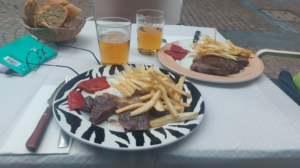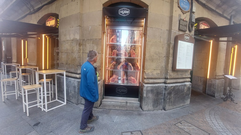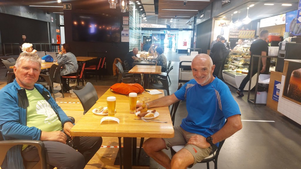 10h15, pause chocolat tapas (jambon fromage) à  Lezama. 15 km d’effectués.