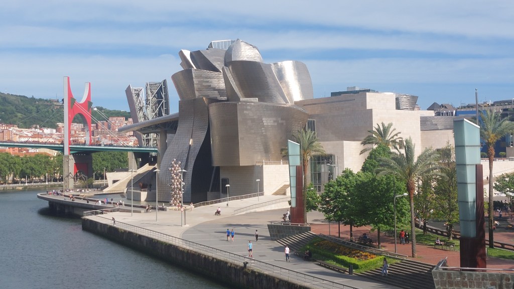 Pour bien terminer la journée, comme nous n’avions pas encore assez marché, nous avons rajouté  10 km supplémentaires en visitant Bilbao et ses nombreux monuments dont le plus connu est le musée  Guggenhein.
