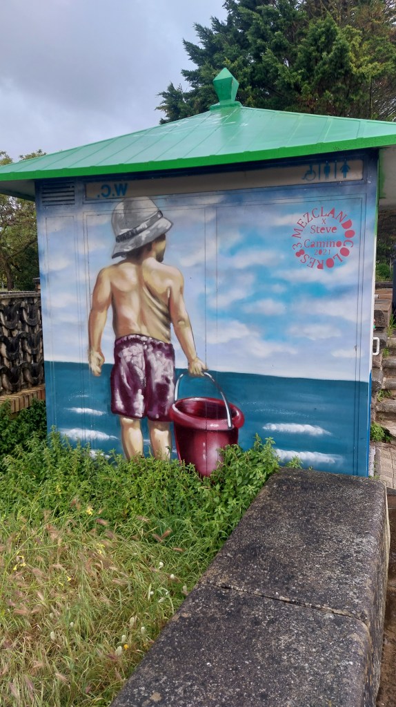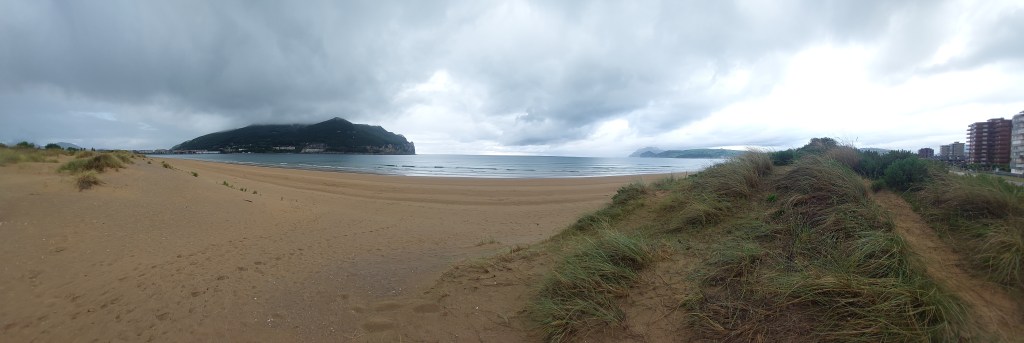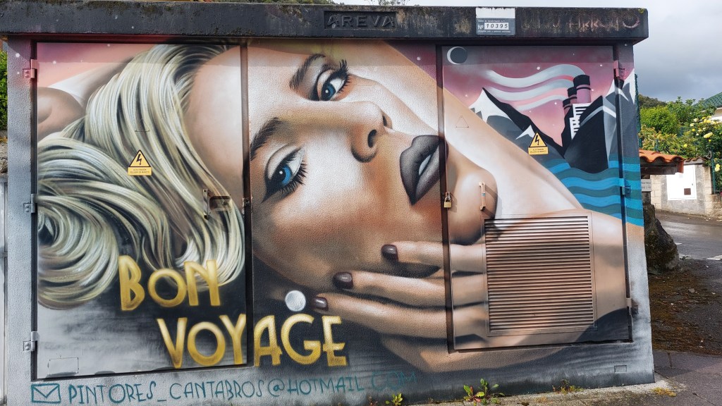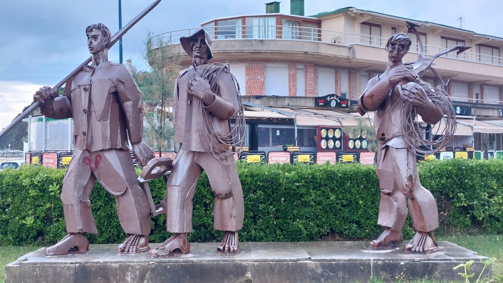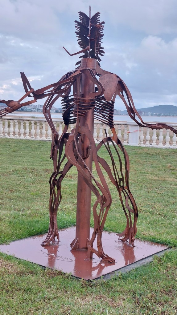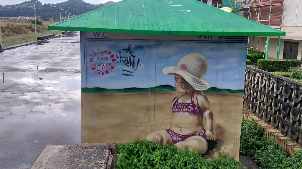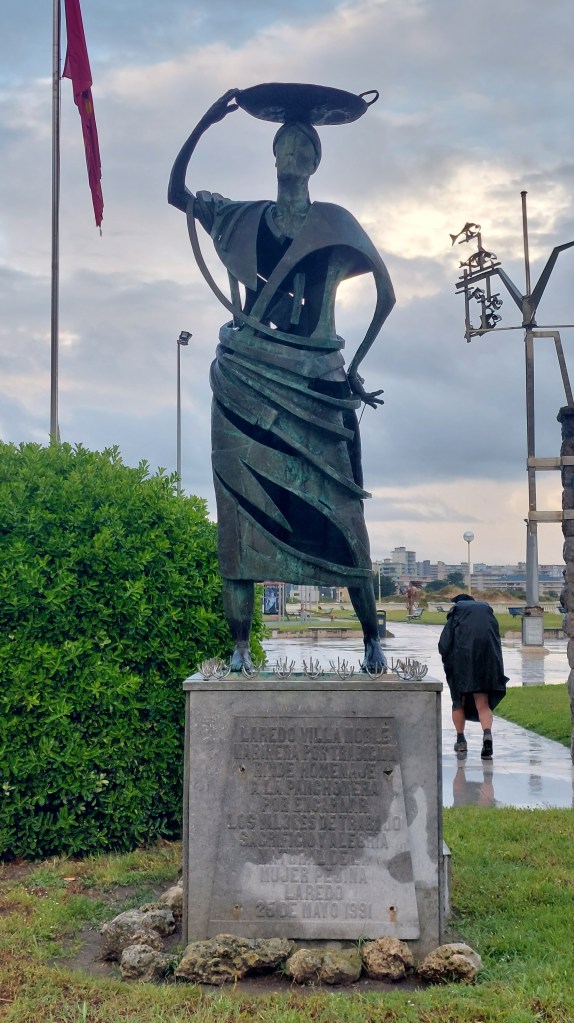 Nous longeons la longue plage de Laredo sur une distance de 4 km, elle continue encore. Elle est bordée de bronzes ou assimilés et d’art urbain ( et non street art).