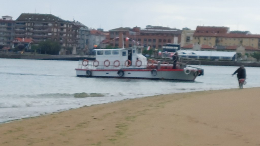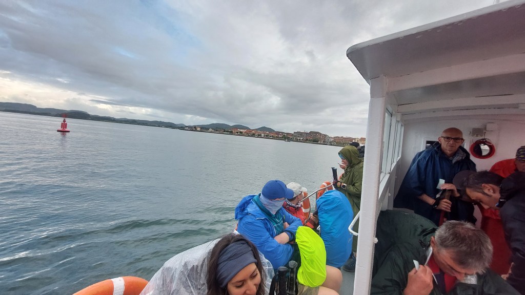 A 8h40, nous nous présentons au puntal d’embarquement pour prendre le bâteau en direction de Santoña. Nous devons attendre 9h00. La traversée à une longueur de 700m environ et nous évite un long détour.