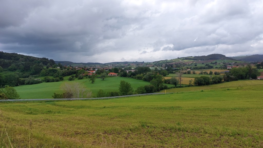 A la sortie de San Miguel de Meruelo, nous quittons l’urbanisation pour déboucher dans la campagne vallonnée. Aucun point de ravitaillement.