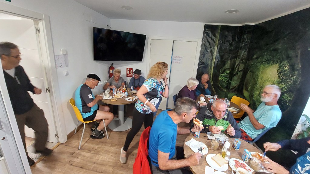 Après une bonne nuit de sommeil, nous voici levés à 6h15. Tous les pèlerins se retrouvent à 7h00 pour le petit-déjeuner.