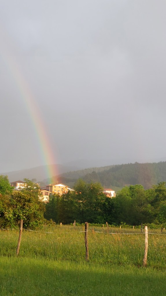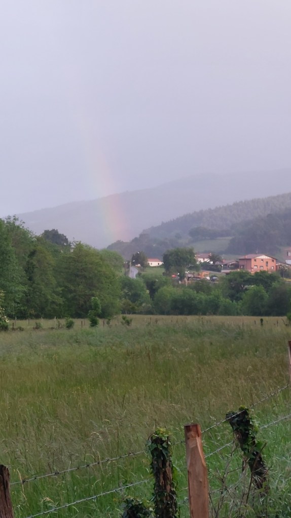 Nous atteignons Islares. Jusqu’à el Pontarón de Quierzo, nous longeons la N 634; nous prenons la pluie en pleine face: des seaux d’eau et rafales de vent.
