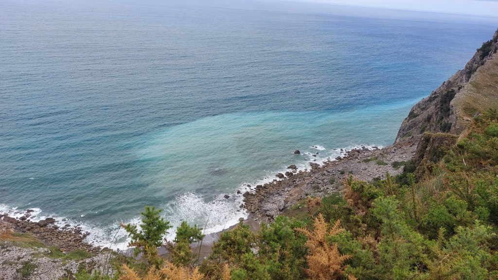 Nous contournons la baie de el Pontarón ( magnifique mais interminable) encore sous la pluie.