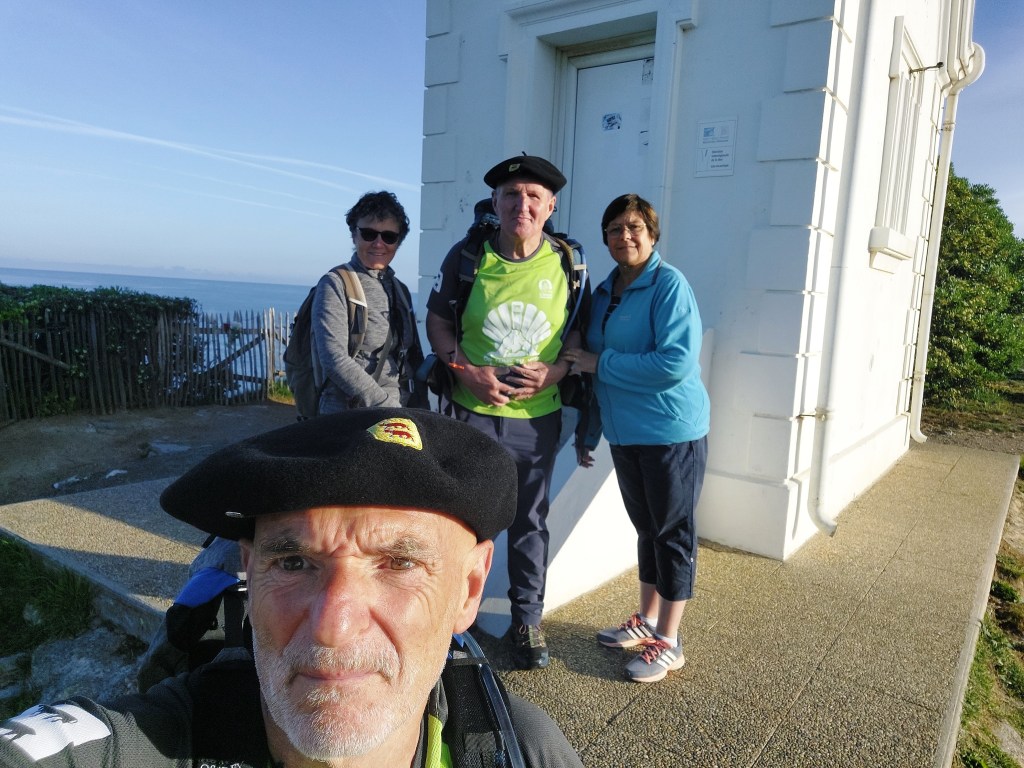8h15,chapelle Sainte Barbe, un pied devant l’autre nous prenons la direction de Saint Jacques accompagnés de Françoise et Claudine qui ont du mal à nous quitter et font 10 km à nos côtés.