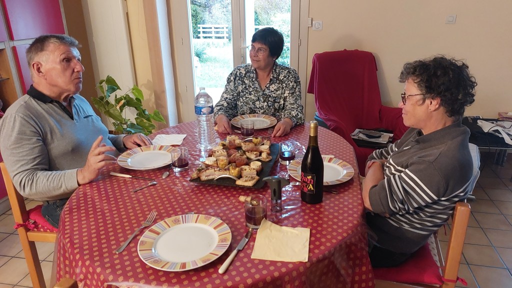 Ce mercredi soir, remise officielle de la tenue du pèlerin ( tee-shirt, béret, écussons).Le tout s’est terminé autour d’excellentes tapas, d’une non moins excellente tarte aux pommes accompagnés d’une sangria maison.