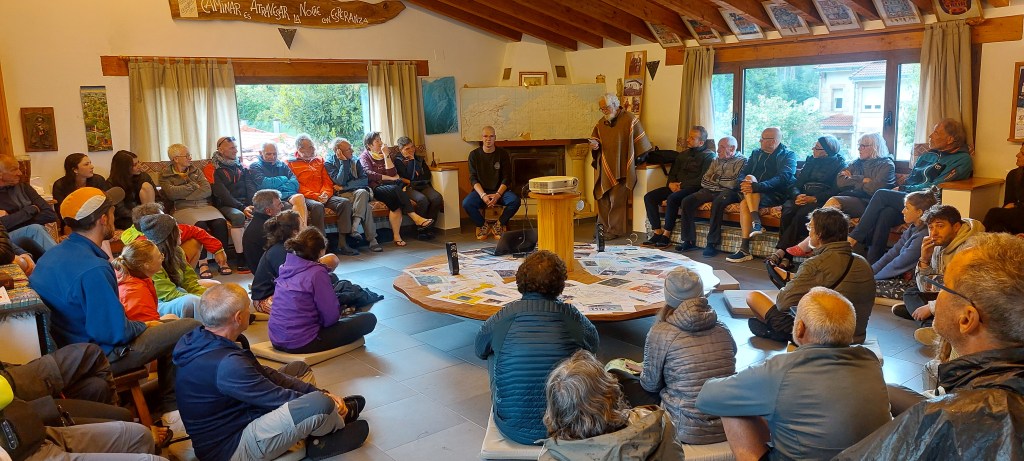 Hier soir, l’ensemble des pèlerins est réuni en salle de réunion pour la présentation de l’association.