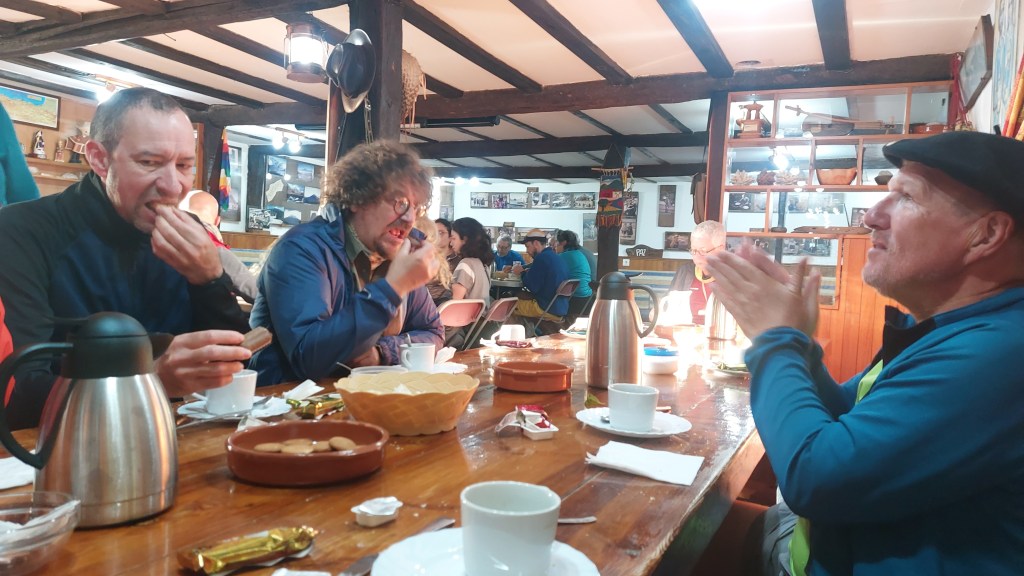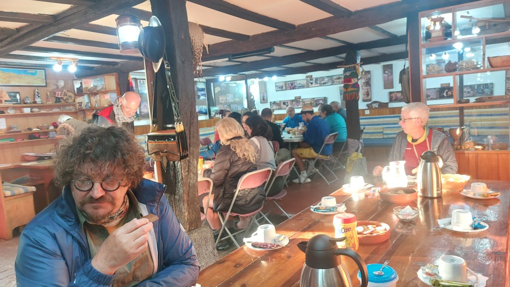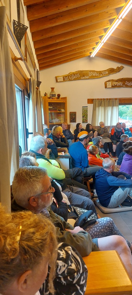 Lever à 6h30 pour un petit déjeuner à 7h30. Les portes sont ouvertes dès  7h15. Nous avons l’intervention  du père Peuto, responsable de l’association cabaña del Abuelo Peuto qui nous donne les dernières consignes sur le chemin de Saint Jacques.