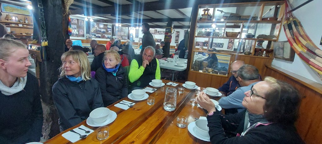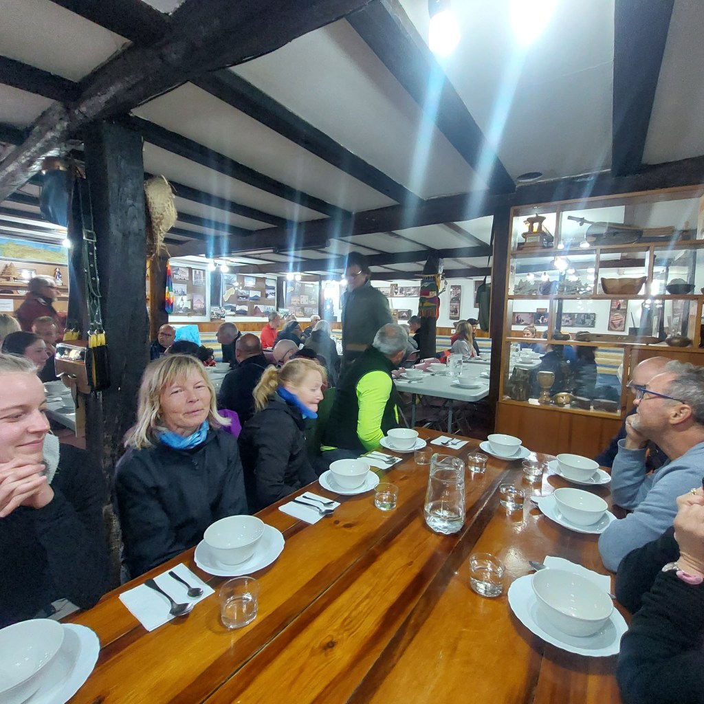 A l’issue, un repas copieux est servi de façon donativo : potage de légumes mixés, ragoût de mouton, yaourt. Excellent.