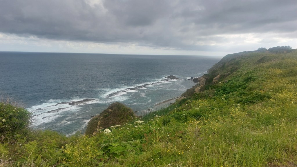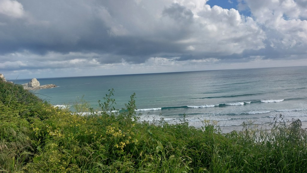 A partir de là, l’environnement change. Nous longeons sur 10 km la mer Cantabrique. Les photos en disent plus que les commentaires.