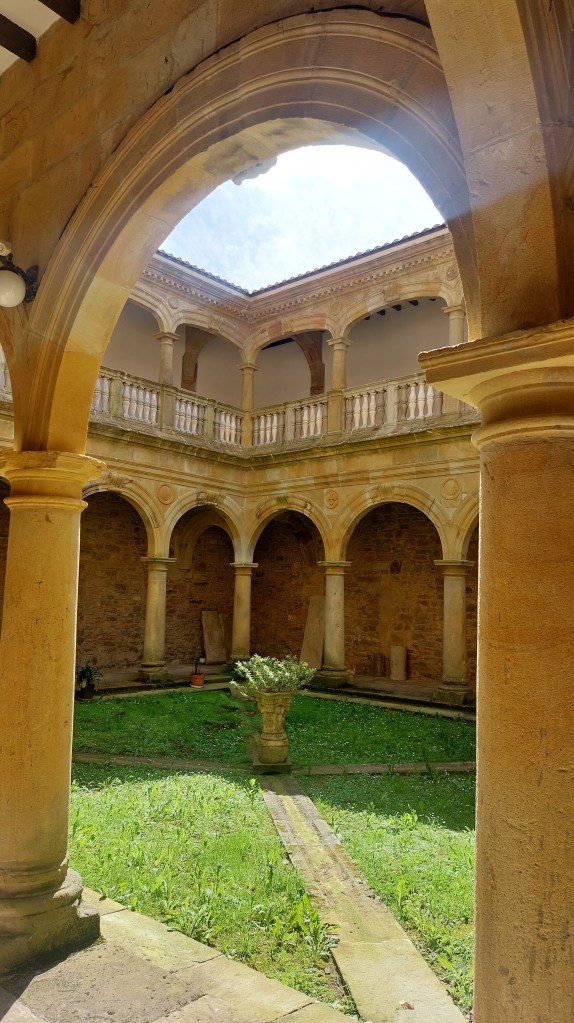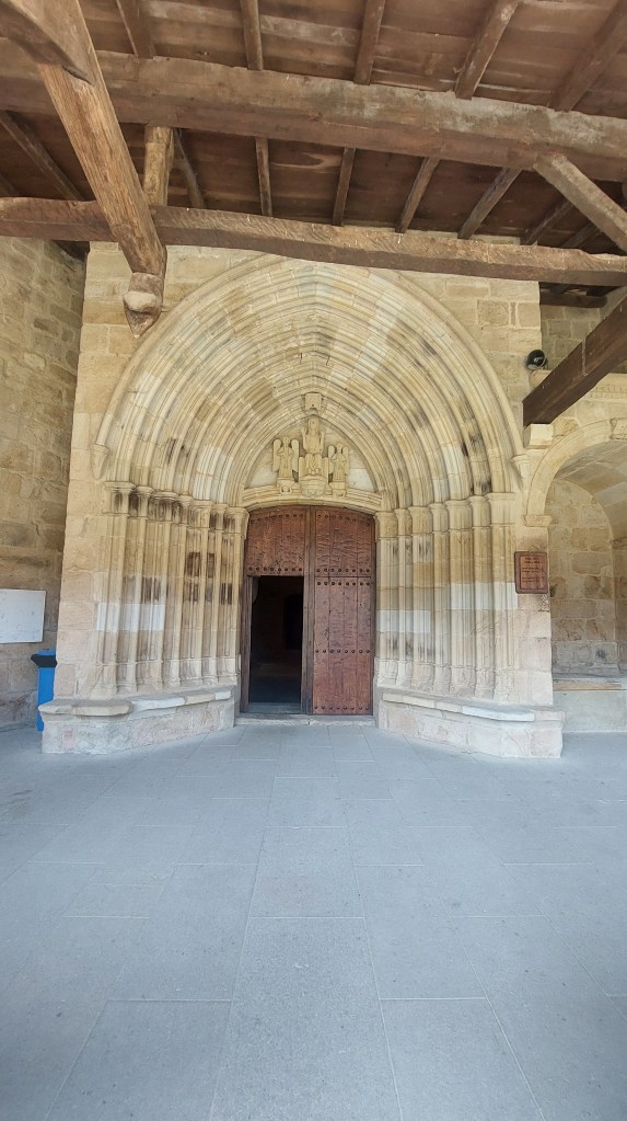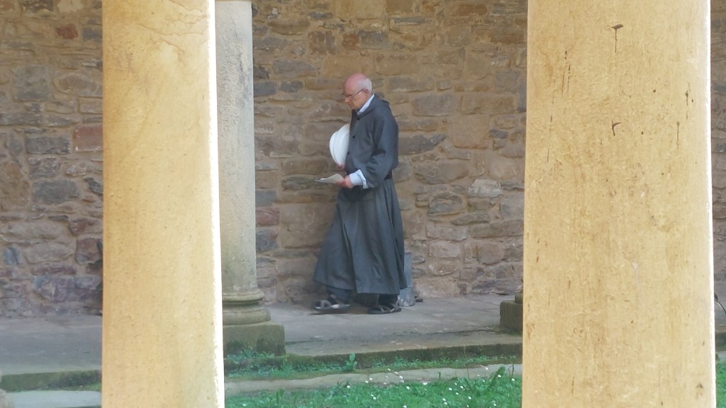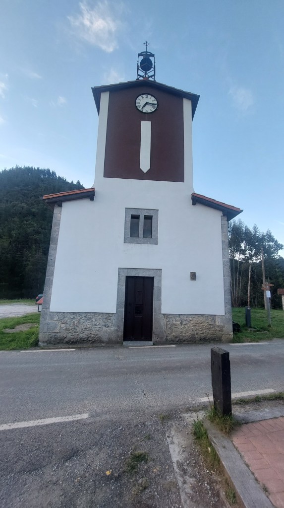 Une erreur de lecture nous fait prendre une fausse route très très pentue. Deux véhicules s’arrêtent à contre sens pour nous avertir de notre erreur. Malgré tout nous décidons de poursuivre. Le premier véhicule a fait demi-tour et propose de nous ramener sur le droit chemin. Nous redémarrons. Jean s’aperçoit trop tard qu’il a laissé ses lunettes dans la voiture. Nous allons de l’avant jusqu’àu monastère de Zenarruza ou nous dormons en passant par Bolivar. Arrivée par un chemin pavé, long et pentu.